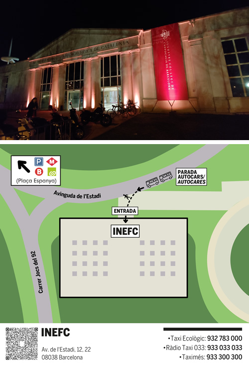 - L’Institut Nacional d’Educació Física de Catalunya (INEFC), Av. de l’Estadi, 12, 22, Distrito de Sants-Montjuïc, 08038 Barcelona
